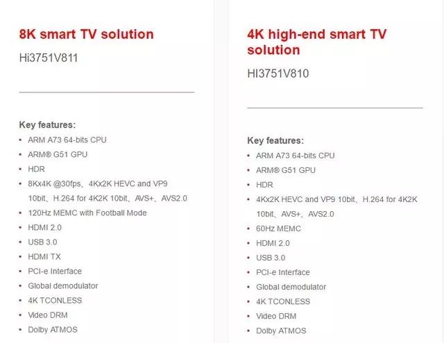 海思對于8K、4K超高清電視的芯片解決方案產(chǎn)品
