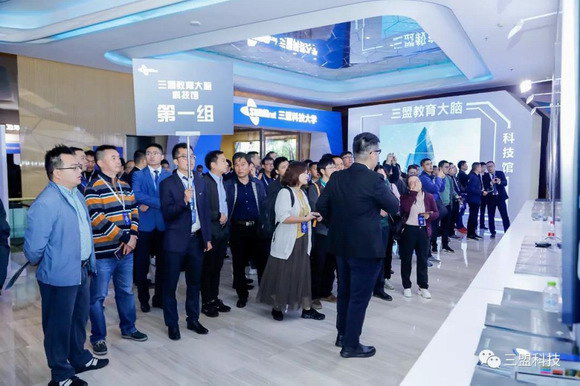 特別關(guān)注,會(huì)議現(xiàn)場(chǎng)特設(shè)2500+㎡三盟教育大腦科技館,圍繞智慧校園創(chuàng)新產(chǎn)品展示新科技及體驗(yàn)區(qū)。整個(gè)展區(qū)共分為,技術(shù)展示區(qū)及產(chǎn)品體驗(yàn)區(qū)。技術(shù)展示區(qū)包含,大數(shù)據(jù)、人工智能、AR/VR、物聯(lián)網(wǎng)、人臉識(shí)別5大技術(shù)。產(chǎn)品體驗(yàn)區(qū)分為:高教展區(qū)、普教展區(qū)、幼教展區(qū)。其中,高教展區(qū)又分為:AIoF智慧校園“一臉通”解決方案體驗(yàn)區(qū)、平安校園體驗(yàn)區(qū)、智慧食堂體驗(yàn)區(qū)、智慧圖書館體驗(yàn)區(qū)、智慧宿舍體驗(yàn)區(qū)、智慧校園人工智能指揮中心、感知空間指揮調(diào)度中心、數(shù)據(jù)空間治理交換中心、智能空間綜合決策中心、AIoD智能數(shù)據(jù)“一表通”平臺(tái)、AIoD高職質(zhì)量診斷與改進(jìn)管理決策平臺(tái)、AIoD學(xué)科發(fā)展規(guī)劃輔助決策平臺(tái)、AIoD學(xué)生安全與成長(zhǎng)輔助決策平臺(tái)、AIoD-BDT大數(shù)據(jù)實(shí)踐教學(xué)平臺(tái)體驗(yàn)區(qū)、AIoD精準(zhǔn)就業(yè)與質(zhì)量提升服務(wù)平臺(tái)、三盟智校物聯(lián)網(wǎng)創(chuàng)新體驗(yàn)中心(辦公室、財(cái)務(wù)室、廚房、停車場(chǎng))、三盟科技大學(xué)智慧教室體驗(yàn)區(qū)、AIoD智能交互式教學(xué)平臺(tái)、人工智能控制中心、管理體驗(yàn)區(qū)(教務(wù)處)、AIoD教學(xué)大數(shù)據(jù)智能分析輔助決策平臺(tái)。普教展示區(qū)有:普教一臉通智慧校園管理平臺(tái)、普教AR/VR智慧課堂體驗(yàn)區(qū)、普教大數(shù)據(jù)平臺(tái)、普教智慧教室展示區(qū)、普教AR/VR技術(shù)展示區(qū);幼教展示區(qū):三盟科技大學(xué)附屬幼兒園AR/VR智慧教學(xué)體驗(yàn)區(qū)等。