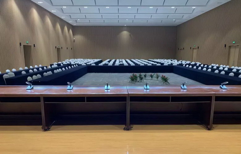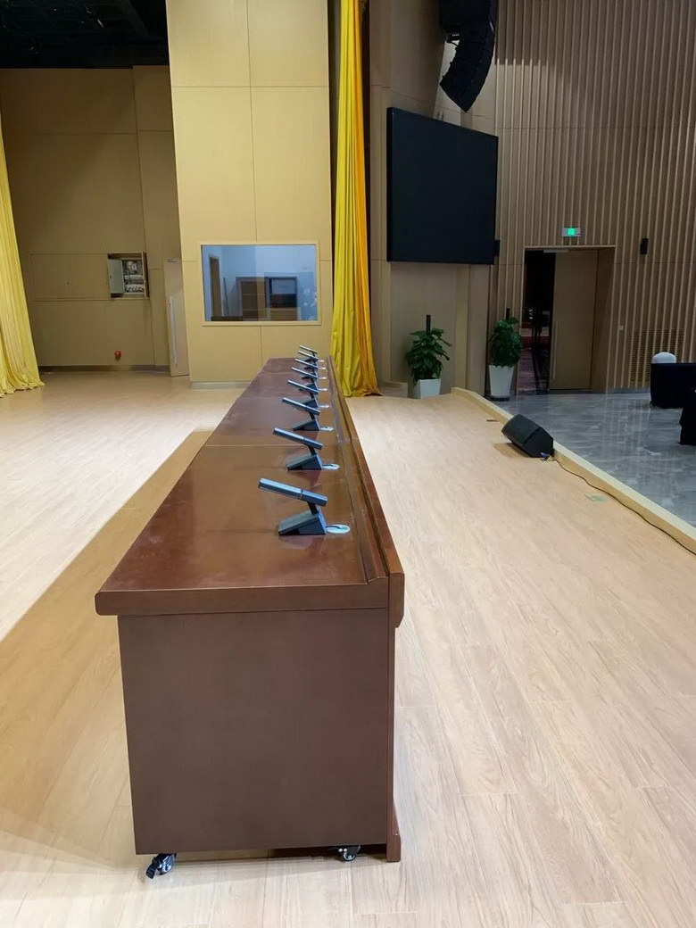 一號(hào)報(bào)告廳的擴(kuò)聲系統(tǒng)采用了Bose ShowMatch DeltaQ線陣列揚(yáng)聲器,SM10、BOSE SMS118各模塊間無縫組合,實(shí)現(xiàn)所有聽音區(qū)均勻一致的聲場(chǎng)體驗(yàn),搭配RMU206返聽、RMU208臺(tái)唇,使音質(zhì)更出眾。