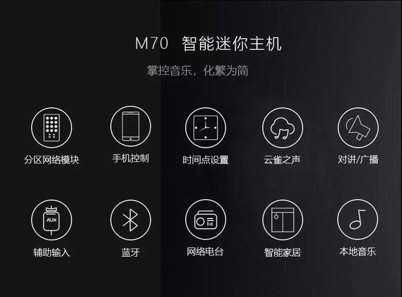 M70采用64位四核Cortex-A53 CPU架構(gòu),Mali400MP2 GPU圖形處理器以及 Sigma DSP專(zhuān)業(yè)級(jí)音效處理器,出色的性能表現(xiàn),演奏出最純真的音質(zhì),婉如天籟之音。擁有分區(qū)控制、高保真立體雙聲道輸出,可解碼所有主流無(wú)損音樂(lè)格式,語(yǔ)音對(duì)講、智能聯(lián)動(dòng)、海量音樂(lè)資源。