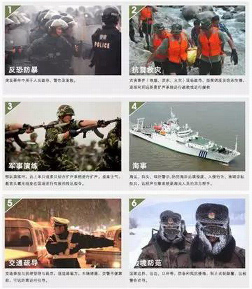 無(wú)論是用于搜索、救援、巡邏,還是用于特警作業(yè)(包括實(shí)施人群疏導(dǎo)、交通和出入口管制、封鎖、設(shè)卡、刑拘等),這套可移動(dòng)裝置都可以用來(lái)增強(qiáng)公共安全手段,就“遠(yuǎn)距離、高強(qiáng)度聲音輸出、低能耗、高清晰度安全方便”等方面說(shuō),超遠(yuǎn)程聲引擎系統(tǒng)都是首選。