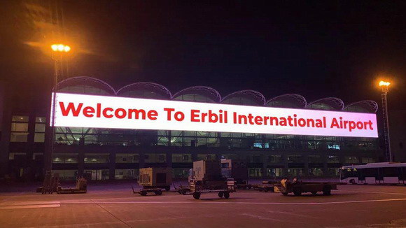 2019年10月,僅耗時15天,埃爾比勒 Erbil 國際機場航站樓玻璃外墻就成功“披上”了一面由薔薇科技打造的LED大屏。