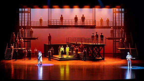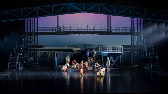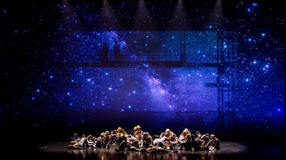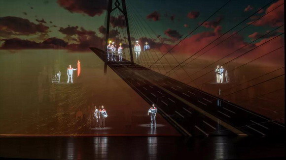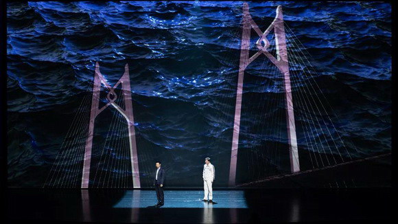 舞美設計上,團隊大膽創(chuàng)新地運用最新的智能化舞臺系統(tǒng),將大橋、人工島、深海沉管等場景完美呈現(xiàn)在觀眾眼前。