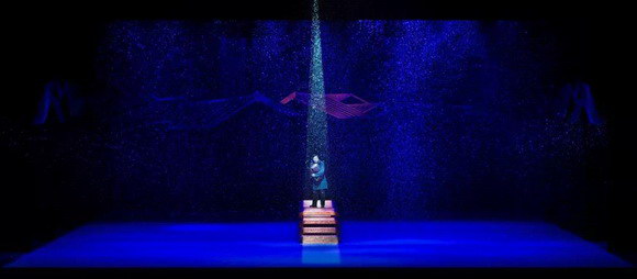 舞臺上的道具都是由金色線圈設(shè)計而成,線圈是串起整場戲的物件,是主人公情感和事業(yè)的起源物,也是勇做改革先鋒的柳市創(chuàng)業(yè)人的精神意向。舞臺基調(diào)圍繞黑色和金色展開,彩熠100多臺FINE 1400PERF、FINE 1400WASH PERF、FINE 470BEAM、FINE 1537PIXIE在舞臺為畫面調(diào)色,營造戲劇氛圍。在黑幕中,金色的線圈就像是一道黎明的曙光,指引創(chuàng)業(yè)者不斷探路前行,彩熠燈則以燈光色彩變幻讓觀眾逐步進入戲劇,產(chǎn)生情感共鳴。