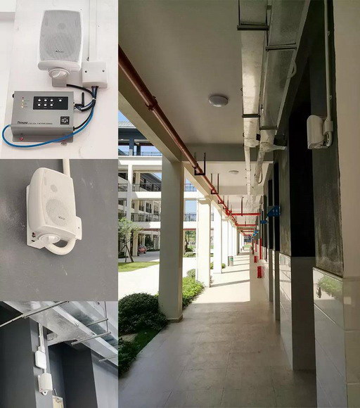 在校道和庭院等戶外區(qū)域,根據(jù)實(shí)際的環(huán)境情況,采用網(wǎng)絡(luò)功放和120W室外豪華防水音柱,可直接播放來自網(wǎng)絡(luò)的背景音樂或音頻信號(hào),營造良好的校園氛圍,同時(shí)室外音柱的抗腐蝕能力強(qiáng),在日曬雨淋等惡劣天氣環(huán)境下不受影響,依然能播放出清晰明亮的聲音。