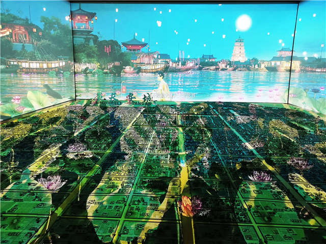紫云樓唐長安城沉浸式立體互動沙盤投影秀,以其巧思創(chuàng)意和影像科技,成為大唐芙蓉園的必看項目。另外,贏康還參與了大唐芙蓉園銀橋飛瀑假山投影秀項目,成為熱門夜游打卡項目。
