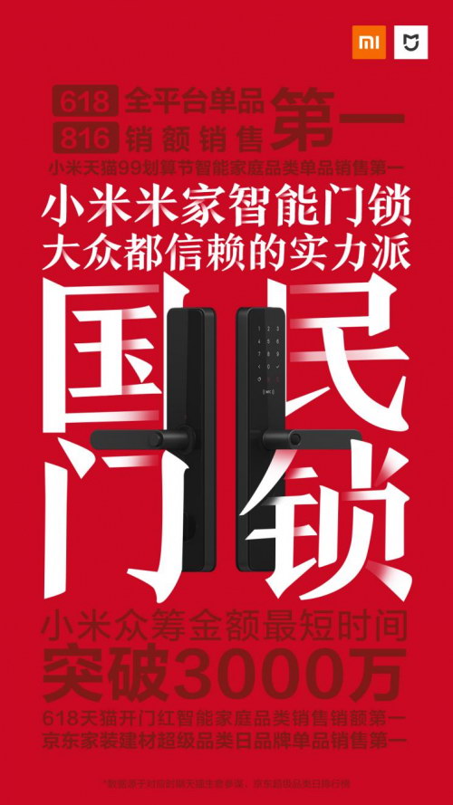 回顧小米從推出第一把標(biāo)準(zhǔn)版智能門鎖,1小時(shí)內(nèi)眾籌金額便破1000萬(wàn)。同時(shí),小米米家智能門鎖也入選了小米商城APP、“小米11.11智能爆品排行榜”,該榜單是根據(jù)用戶搜索、銷量、好評(píng)等數(shù)據(jù)所計(jì)算得出的綜合性榜單。榜單上的每一款產(chǎn)品都是真正受到用戶認(rèn)可和喜愛(ài)的好產(chǎn)品,用戶可以放心選擇。