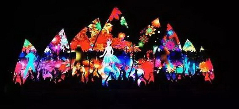 以樹葉為載體的多維飾面燈光裝置創(chuàng)新產(chǎn)品進行設(shè)計,通過裝置、激光與畫面相融合,以裸眼3D的視覺效果,在空間變換下,為游客呈現(xiàn)栩栩如生、朦朧夢幻的花仙故事。