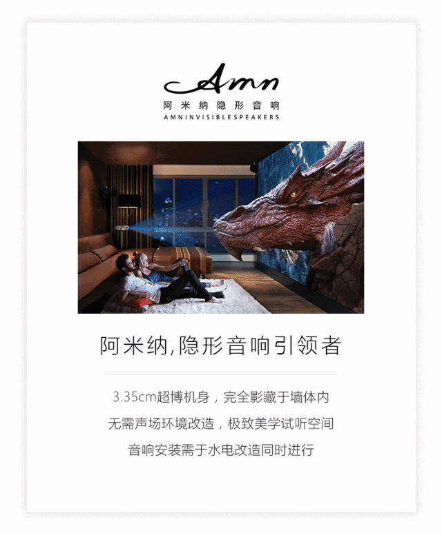AMN阿米納隱形音響緣起于20世紀80年代,當時的英國國防部的研究人員為了研究降低戰(zhàn)斗機引擎噪聲的方法,曾嘗試使用復(fù)合平板材料來封閉引擎,偶然發(fā)現(xiàn)這些復(fù)合平板材料有如揚聲器一般因振動而發(fā)出巨大的聲音。于是,研究人員想到了利用這種復(fù)合平板材料來制造揚聲器。 1996年,隱形揚聲器技術(shù)開始投入商業(yè)及家用等實際應(yīng)用領(lǐng)域,徹底顛覆了傳統(tǒng)揚聲器的技術(shù)理念,在歐洲屢獲大獎,基于此項創(chuàng)新科技,開啟了阿米納隱形揚聲器的全新篇章。時任英國首相的約翰.梅杰爵士贊揚隱形揚聲器技術(shù)是劃時代的偉大發(fā)現(xiàn)。 AMN阿米納是全球隱形音響領(lǐng)域的開創(chuàng)者,歷經(jīng)數(shù)年,阿米納已開發(fā)出私家影院、客廳影院、背景音樂系列隱形音響產(chǎn)品,成為行業(yè)領(lǐng)先品牌。AMN阿米納隱形音響科技、簡單、低碳的設(shè)計理念,真正做到了"只聞其聲,不見其形"。讓聆聽者享受音樂無處不在的,前所未有的完美視聽體驗。