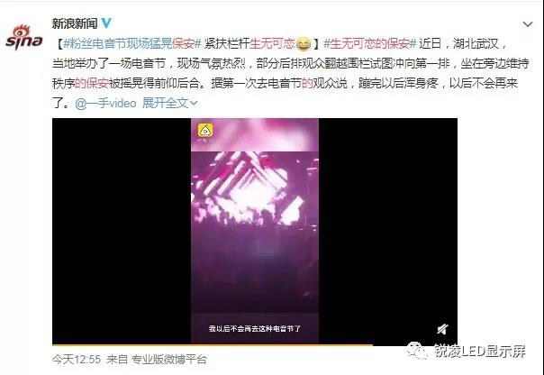觀眾跟隨音樂節(jié)奏,合唱?dú)g呼,活力四射,燃爆全場。因現(xiàn)場粉絲太嗨了,把現(xiàn)場維護(hù)秩序的保安搖晃得前仰后合,#生無可戀的保安#一度被登上微博熱搜。