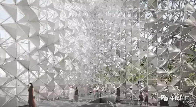 燈籠的造型也代表了中國館如同“一帶一路”上的一盞明燈,為充滿機遇的未來照亮美好的前程。