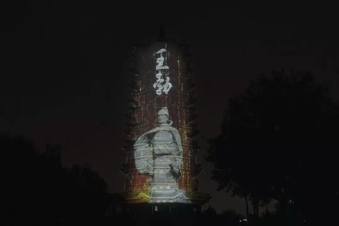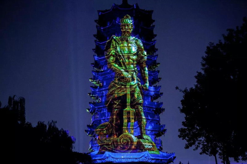 分別在塔周圍用4組投影機(jī)對塔身投射