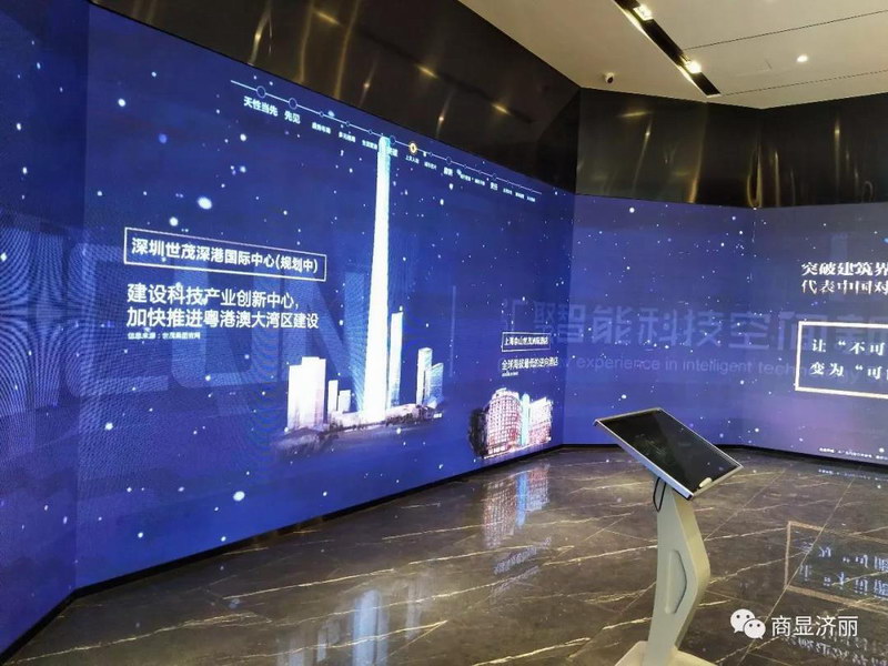 Genius此次為上海世貿(mào)-昆明世茂營(yíng)銷中心建設(shè)了一套折形環(huán)繞式LED大屏幕顯示系統(tǒng)。運(yùn)用了多項(xiàng)Genius創(chuàng)新專利技術(shù),包括專利驅(qū)動(dòng)電路和點(diǎn)對(duì)點(diǎn)可視化控制系統(tǒng),全系4K高清接口。
