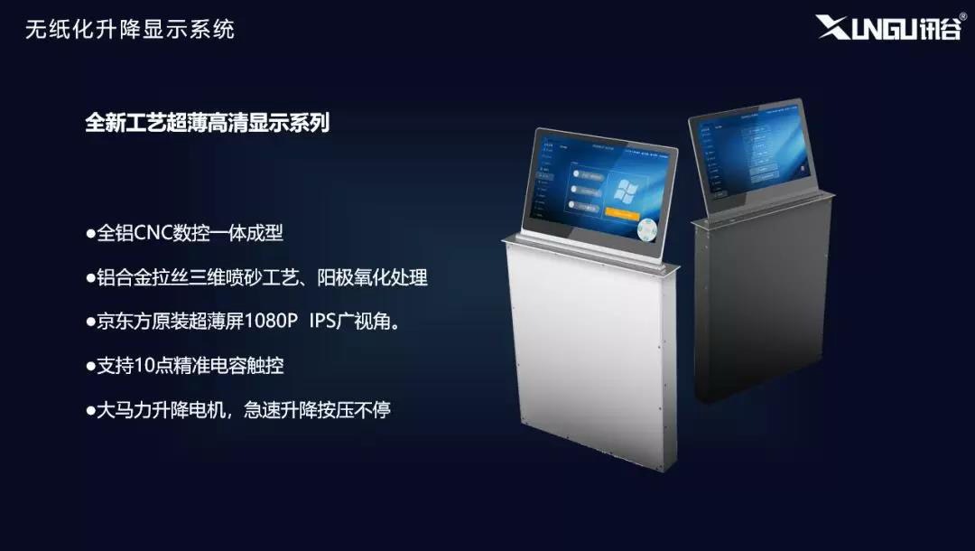 針對市場上無紙化升降存在的問題,訊谷升級生產(chǎn)工藝,打磨出全新高清超薄無紙化升降顯示器;得益于北京軟件研發(fā)團隊,創(chuàng)新性的在無紙化會議軟件中加入AI算法,讓訊谷無紙化軟件更加的高效智能。