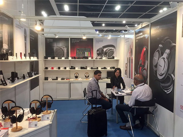 公司旗下的“得勝”品牌產(chǎn)品,在香港秋季電子產(chǎn)品展上一經(jīng)亮相,就吸引了眾多國內(nèi)外采購商觀看與咨詢。GX6 USB數(shù)字麥克風(fēng)、MX1便攜式直播聲卡、HF 580 Hi-Fi平板振膜耳機(jī)和E300W擴(kuò)音器,在本次為期四天的展會上,備受觀展商的青睞,首版游戲耳機(jī)“勛”也憑著精致的外觀、優(yōu)良的品質(zhì)令眾多游戲類觀展商駐足詢問。