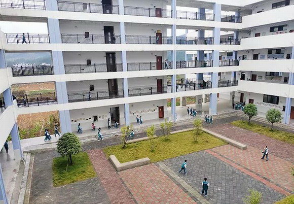 群希學校以清代名將楊芳故居為鄰,與松桃文體公園隔江相望。背靠七星山峰巒聳翠,面臨松江河碧波蕩漾。早晨,朝陽含著微笑在傾聽我們朗讀;傍晚,明月帶著沉思在注視我們習作。