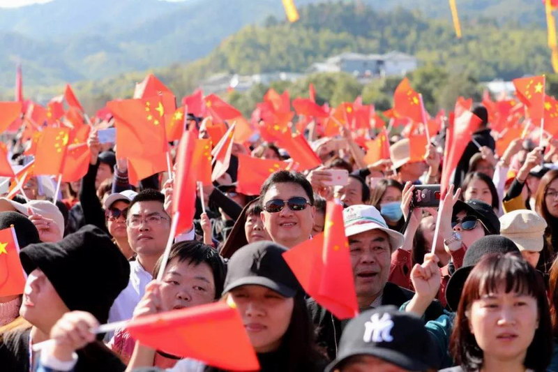 在這溫暖的冬陽里,古田這個南國小鎮(zhèn)大煥光彩,一曲曲響徹云端的美妙歌聲,一支支激動人心的精彩舞蹈陸續(xù)上演,每個人都手舉著紅旗,放聲高歌。