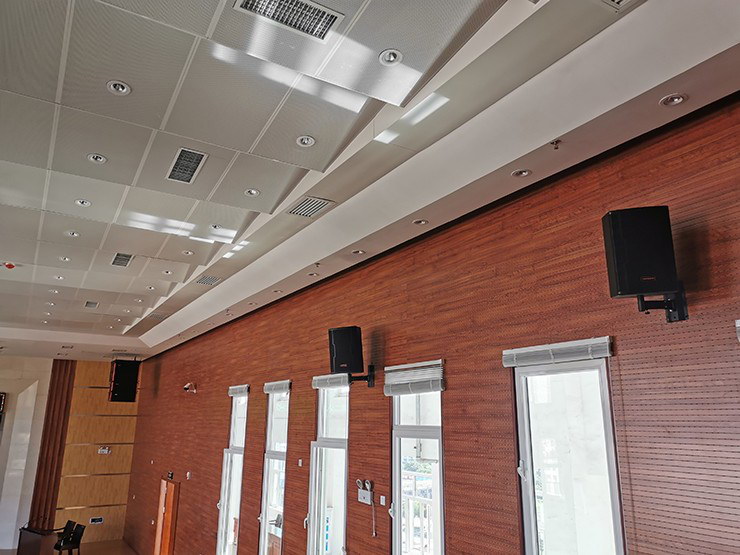 醫(yī)院報告廳擁有能容納約200人的建筑面積,主要要求滿足日常會議語音擴聲、學術報告、學習培訓等功能。根據工程需求,得勝(寧夏)工程團隊配置了得勝線陣列音響系統(tǒng)搭配的ELV高品質全頻音響。ELA-082全頻音箱作為主擴聲,具有特制的高指向性號角,具備較高的靈敏度、準確的中頻表現力和優(yōu)異的高頻解析力;ELV-101全頻音箱作為補聲音箱,整體音質靈敏度高、低頻扎實、中高頻音色優(yōu)美;ELA-181SUB線性陣列超低音音箱,可提高低頻往正前方傳輸的聲能量、并提升低頻聲壓和力度。配備的三款音箱可相互補充各頻段的擴聲效果,達到報告廳音響系統(tǒng)擴聲面廣、聲音清晰明亮的效果。