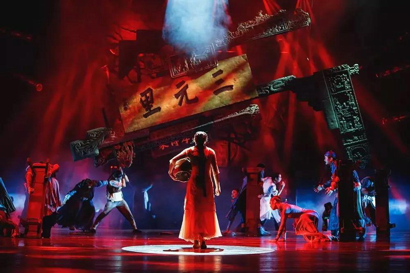 劇目的舞臺空間由巨型的竹編獅頭龍骨構成,配合燈光的方向、角度、光位高低的變換,在完美渲染劇情氛圍的基礎上完成舞臺空間的不斷切換。