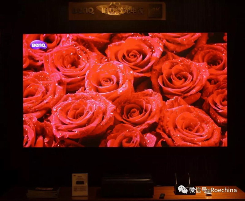 而今天明基激光電視新品i965L搭配高級抗光屏幕,帶來客廳影院,讓現(xiàn)場影音愛好者們覺得很專業(yè)。