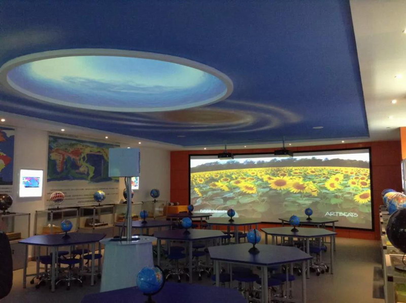 重慶七中的數(shù)字化地理專用教室由羿飛教育設(shè)計(jì)承建,高清的地理圖像、各種地質(zhì)地貌模型、數(shù)字立體地形、天文演示穹頂……將現(xiàn)代影像技術(shù)與地理教學(xué)最大程度的整合,讓課堂教學(xué)更加直觀生動(dòng)。