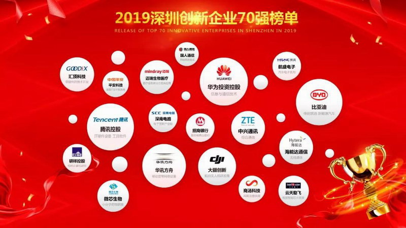2019年深圳創(chuàng)新企業(yè)70強(qiáng)榜單