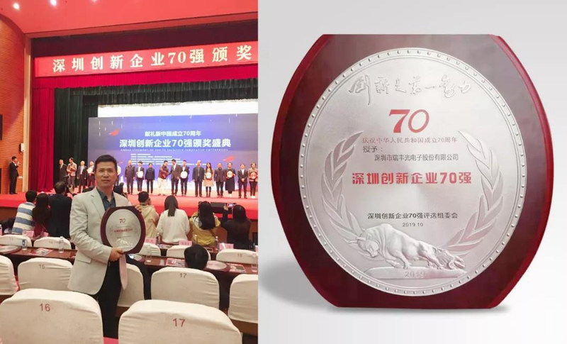 2019年12月13日,“深圳創(chuàng)新企業(yè)70強(qiáng)”頒獎(jiǎng)盛典隆重召開,在經(jīng)歷了重重篩選及公示后,深圳市瑞豐光電子股份有限公司成功入選并出席了此次盛典。入選70強(qiáng)的企業(yè)中,既包含了招商銀行、華為控股、順豐速運(yùn)、中興通訊等這些耳熟能詳?shù)钠髽I(yè),也包含了諸多在各行各業(yè)獨(dú)領(lǐng)風(fēng)騷的隱形冠軍,由此可見本次活動(dòng)評(píng)選的權(quán)威性。