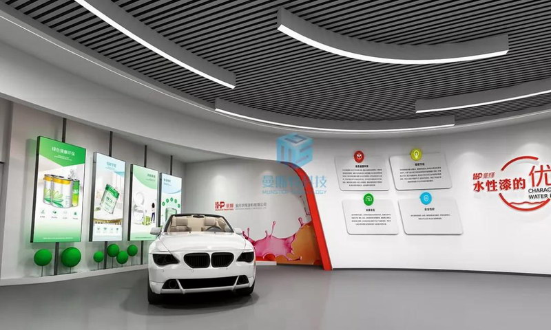 通過(guò)材質(zhì)的運(yùn)用,燈光的營(yíng)造,錯(cuò)落有致的實(shí)體汽車擺位,豐富的汽車外觀色彩,讓客戶直觀的感受汽車涂料的色調(diào)環(huán)保性能,不同涂料呈現(xiàn)出來(lái)的汽車質(zhì)感光澤與細(xì)節(jié)輪廓,供客戶品鑒和體驗(yàn),加快客戶決策,達(dá)成合作。