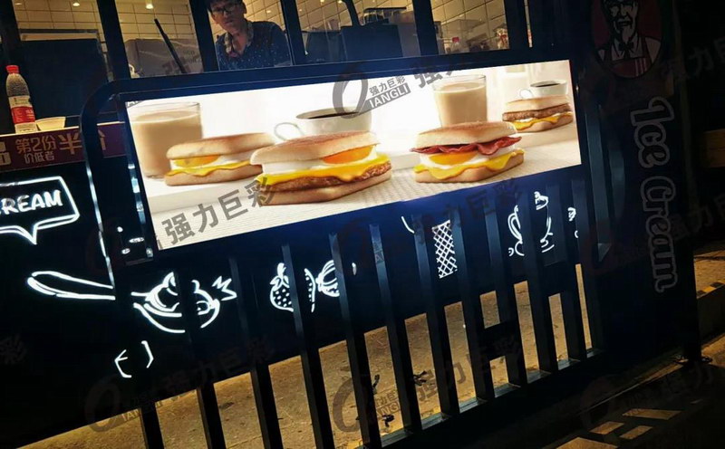 LED顯示屏可以安裝在餐廳的最為顯眼的位置。一塊在對的位置播放恰當(dāng)內(nèi)容的屏幕,能夠成為餐廳真正字面意義上的“活招牌”。不僅能顯示菜單項目,還可以顯示菜品的營養(yǎng)信息和成分;另外還能提供食品的動態(tài)圖像和視頻,或者可以在顧客享用美食的同時,餐飲店向顧客分享自己的品牌故事,讓更多顧客了解、進(jìn)而認(rèn)同該餐飲店。