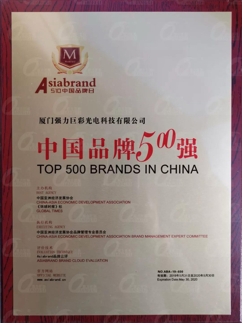 廈門強(qiáng)力巨彩光電科技有限公司2004年在"光明之城"福建泉州成立,2009年總部遷往廈門市火炬高新科技產(chǎn)業(yè)園。公司產(chǎn)品全面涵蓋室內(nèi)單雙色、戶外亞戶外單雙色、室內(nèi)全彩和戶外全彩,是一家集研發(fā)、生產(chǎn)、銷售和服務(wù)為一體的高新技術(shù)企業(yè)。同時(shí)作為中國(guó)光學(xué)光電子行業(yè)協(xié)會(huì)、福建省及廈門市光電協(xié)會(huì)會(huì)員和廈門市高新技術(shù)協(xié)會(huì)常務(wù)理事單位,強(qiáng)力巨彩曾榮獲國(guó)家認(rèn)定企業(yè)技術(shù)中心、高新技術(shù)企業(yè)、國(guó)家火炬項(xiàng)目證書、納稅明星企業(yè)以及安全生產(chǎn)先進(jìn)單位等多項(xiàng)榮譽(yù)。