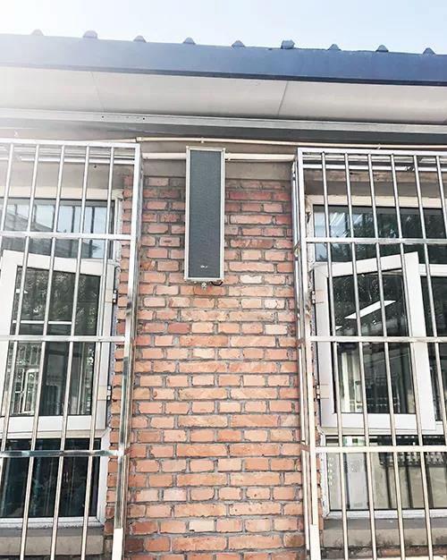 校園室外配置Gmtd大功率防雨音柱GM-628,可全方位無死角覆蓋,利用無線IP遙控器GM-8012在操場可實現(xiàn)無線點播功能,方便體育老師實時操作播放節(jié)目。