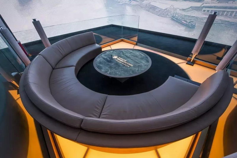 落座后大門徐徐關(guān)閉,沙發(fā)旋轉(zhuǎn),客廳上升,高達(dá)9米,沿途中6只 B&0 BEOLAB 高品質(zhì)音柱和1只 Mayasound 低音音箱,烘托出環(huán)境聲,由 iPad 觸控全部設(shè)備。面向安裝偏差不超過3mm 視寬720° 總面積130M² 的LED環(huán)幕,在古典樂章中,十八梯的歷史風(fēng)貌重現(xiàn)、現(xiàn)代化市容映入眼簾,讓人從老重慶的煙火氣中放眼現(xiàn)代高科技的未來。