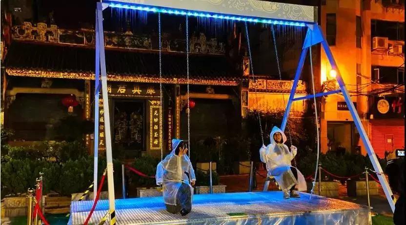 蕩秋千和水幕的結(jié)合,當(dāng)玩家蕩秋千到垂直于地面時,水幕會空出位置讓人蕩過去,給玩家一種在水簾下蕩秋千卻不沾水的體驗!