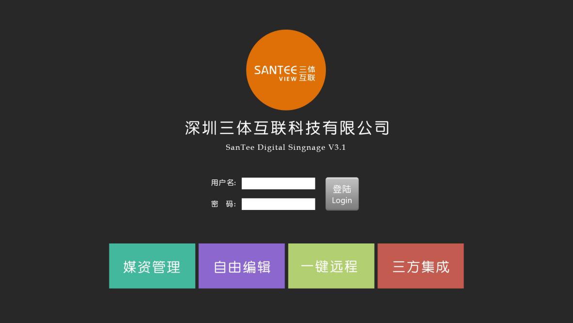 深圳三體互聯(lián)科技有限公司(簡稱:三體互聯(lián),英文商標:santeeview),三體互聯(lián)一致專注于多媒信息化媒介的革新服務,致力于在客戶端對服務器端智能媒介、無線網(wǎng)絡、平臺運營、數(shù)據(jù)挖掘等方向的研究,已經(jīng)在網(wǎng)絡多媒體視頻管理領(lǐng)域和數(shù)字媒體播放平臺(信息發(fā)布、會議預約和3D地圖互動導視)取得了眾多成果,并形成了多項擁有自主知識產(chǎn)權(quán)和具有國內(nèi)國際領(lǐng)先水平的完整產(chǎn)品和解決方案。