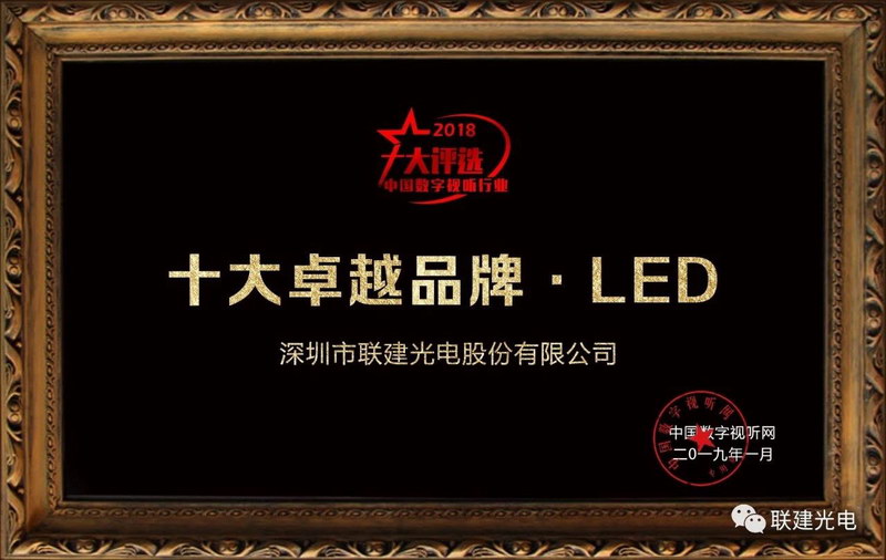 捷報(bào)頻傳|聯(lián)建光電榮膺LED顯示屏“十大卓越品牌”殊榮