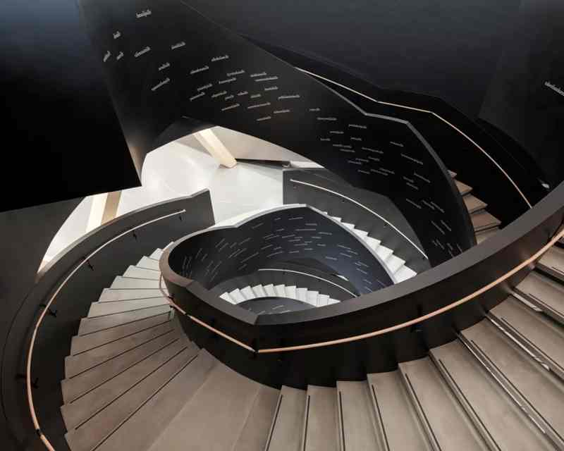 但最震撼的還是從一樓到二樓的旋轉(zhuǎn)金屬樓梯,