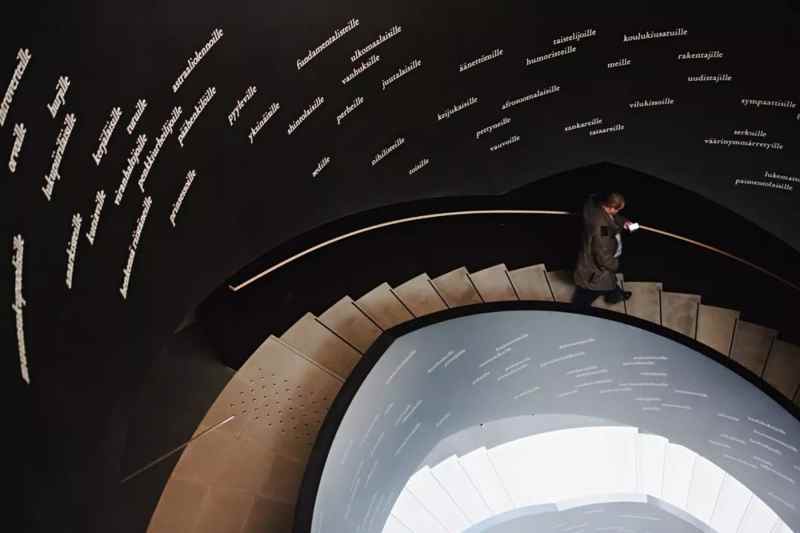 黑色的樓梯上印著一個個芬蘭單詞,