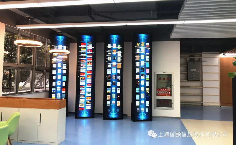 東南大學(xué)坐落于南京,是享譽(yù)海內(nèi)外的著名高等學(xué)府。近日,信頤聯(lián)合知名的數(shù)字內(nèi)容商為東南大學(xué)打造圖書館可視化系統(tǒng),一樓大廳高挑絢麗的大屏,自上而下顯示各式書籍,如同“瀑布流”;后臺(tái)大數(shù)據(jù)拼接屏則實(shí)時(shí)顯示書籍借閱排名、到館人數(shù)、空間使用情況等信息。系統(tǒng)大大改善圖書館為廣大教師、學(xué)生的服務(wù)功能。放置于圖書館一樓大廳的“瀑布流”觸摸拼接大屏和后臺(tái)大數(shù)據(jù)拼接屏均選用三星工業(yè)級面板,具有高清高分辨率、壽命長、性能穩(wěn)定、低功耗、節(jié)能環(huán)保等特點(diǎn)。數(shù)據(jù)后臺(tái)大屏采用壁掛式+前維護(hù)安裝方式;瀑布流大屏采用機(jī)柜式+落地式。“瀑布流”拼接觸摸大屏,讓讀者一進(jìn)門就可以看到屏幕上不斷刷新的書籍信息,本期熱點(diǎn)書籍排行,新進(jìn)書籍