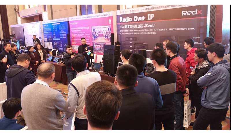 在這美好的4月,“Audio over IP——2019 Redx全國(guó)巡展“10日在山東濟(jì)南喜來(lái)登酒店開(kāi)啟。Redx秉承“Audio over IP “理念,致力于為用戶提供全網(wǎng)絡(luò)化音頻解決方案。展出的產(chǎn)品均采用了Dante音頻傳輸協(xié)議,包括:Dante話筒、數(shù)字音頻處理器、PoE音箱以及PoE線陣列等,此外我們的系統(tǒng)從音頻輸入、處理到音箱還原也都采用網(wǎng)線連接。