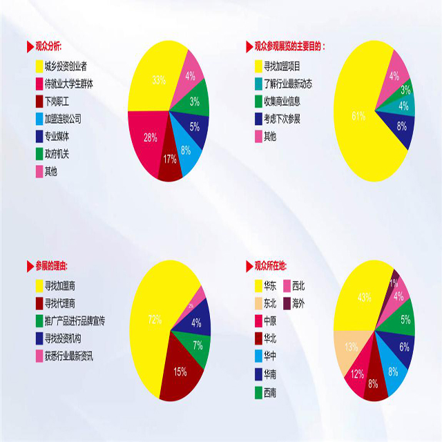 近年來,我國連鎖業(yè)發(fā)展迅猛,帶動了特許經(jīng)營與餐飲行業(yè)的發(fā)展。目前,國內(nèi)外連鎖與時尚餐飲已經(jīng)形成以加盟為主、直營為輔的發(fā)展模式,越來越多的連鎖與餐飲品牌涌入市場。上海餐飲連鎖加盟與特許經(jīng)營展幫助了上千個特許加盟品牌拓展連鎖版圖;打造出眾多耳熟能詳?shù)闹放啤I虾_@座現(xiàn)有2800萬人口的國際化特大型城市,必將吸引全國和世界各地更多的特許經(jīng)營與餐飲連鎖企業(yè)投資上海,這將為特許經(jīng)營與餐飲連鎖企業(yè)的發(fā)展提供更為廣闊空間。上海國際餐飲連鎖加盟與特許經(jīng)營展覽會(簡稱:SHC CHINA)作為亞洲地區(qū)特許經(jīng)營與餐飲連鎖加盟和創(chuàng)業(yè)投資領(lǐng)域?qū)I(yè)盛會已在上海成功召開過五屆,展會以“引導(dǎo)特許加盟新潮流,開啟品牌戰(zhàn)略新疆土”為主題,展出面積超過萬平米,共吸引來自國內(nèi)外近數(shù)百家特許經(jīng)營與餐飲連鎖企業(yè)參展以及數(shù)萬名觀眾前來參會。