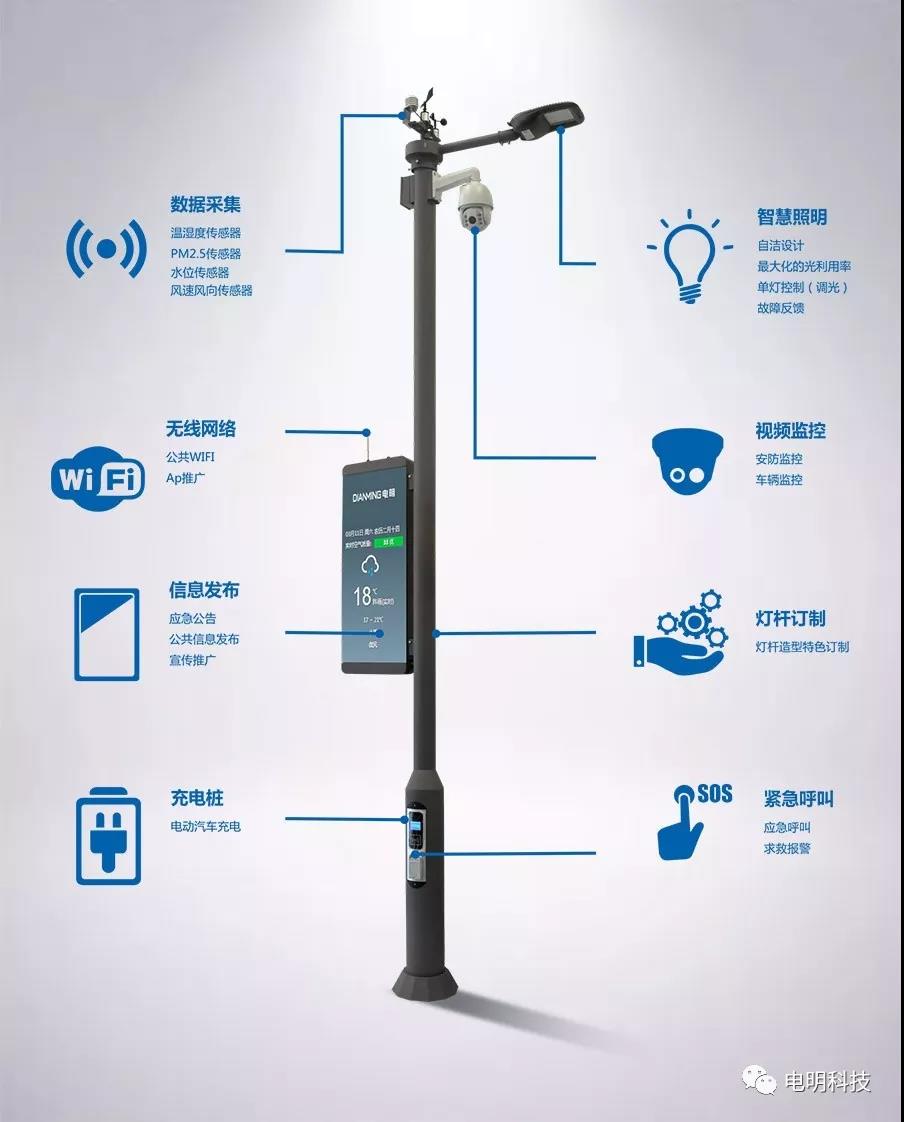 隨著智慧城市建設工作的不斷深入,路燈照明系統(tǒng)作為市政建設的重要基礎設施,早已不再是簡單的照明工程,而是城市物聯(lián)網(wǎng)的端口,將發(fā)揮更大的“綜合體”作用,讓智慧城市的建設更好的落地。在智慧城市建設發(fā)展的大背景下,智慧路燈應運而生。智慧路燈實現(xiàn)了如充電樁、LED信息發(fā)布屏、高清攝像頭、應急報警、5G基站搭載網(wǎng)絡、停車檢測、環(huán)境感知、積水監(jiān)測、網(wǎng)絡音像等功能,利用物聯(lián)網(wǎng)及互聯(lián)網(wǎng)技術,使路燈成為智慧城市信息采集終端和便民服務終端。電明科技抓住時代機遇,通過多年的道路照明行業(yè)經(jīng)驗,結合在LED路燈、