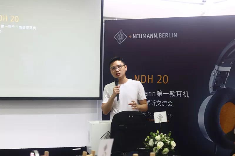 錦藝國際渠道經(jīng)理吳杰春先生,則為大家補(bǔ)充了Neumann NDH20的產(chǎn)品亮點(diǎn)。NHD20采用全新設(shè)計(jì)的38mm動(dòng)圈單元,強(qiáng)力釹磁鐵確保高靈敏度和低失真。NDH 20的Duofol振膜專業(yè)技術(shù)與HD800相同,追求精準(zhǔn)的聲音控制,實(shí)現(xiàn)自然通透的真實(shí)聲音。