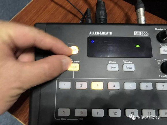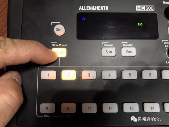 需要調出已經保存場景,按下Recall鍵后,按亮一個數(shù)字鍵,就調出之前保存在這個位置上的場景了。