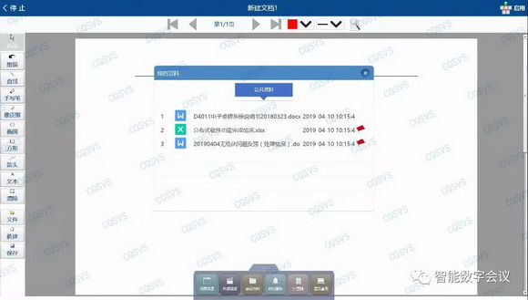 2. 會議主持人可開啟公共白板,并打開一個事先上傳的會議資料,所有參會人員均能同步看到資料內(nèi)容并進(jìn)行互相討論,共同手寫批注、圈劃涂改等,所有操作在與會者的顯示屏上均同步顯示,大家討論完畢后可將最終資料保存至服務(wù)器,會后統(tǒng)一收集,方便高效。
