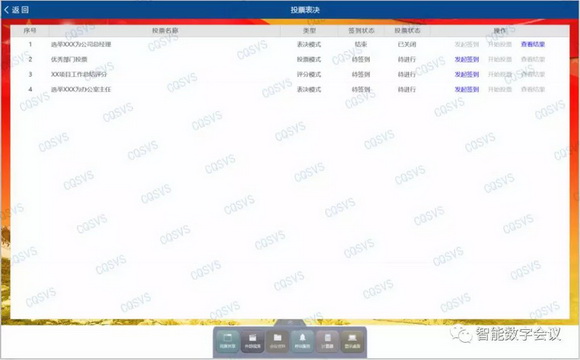 1. 投票表決往往也是一場重要會議必不可少的環(huán)節(jié)了,SVS無紙化系統(tǒng)支持同時創(chuàng)建多個議題議案,并且針對某個議題議案在后臺可設(shè)置直接進(jìn)行投票或重新簽到后再進(jìn)行投票,避免了同一場會議中個別議題議案的投票者不一樣的尷尬,人性化滿足多種會議需求。