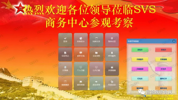 1. 最后介紹一下該系統(tǒng)的中控場景控制功能,在會議主持人端的無紙化系統(tǒng)右下角,有一個隱藏彈出式的中控控制模塊,筆者通過觸摸操控,輕松地將會議室的燈光、電動窗簾、顯示屏升降等所有控制集于手中,是不是很高大上?據(jù)專業(yè)技術(shù)人員講解,此功能是在無紙化軟件系統(tǒng)的平臺上,通過自定義中控指令編程的方式,搭配相關(guān)第三方控制系統(tǒng)設(shè)備來實(shí)現(xiàn)的,不得不說這個特色功能也是非常實(shí)用和非常具備科技感的了。