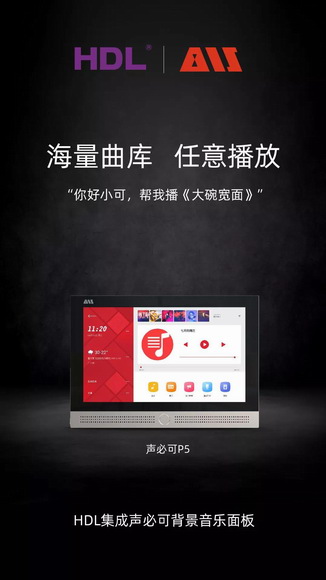 家里所有連接到HDL系統(tǒng)的設(shè)備,都可以通過聲必可B5、P5背景音樂面板進(jìn)行語音控制。