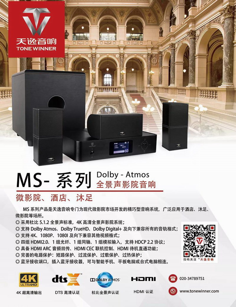這一款專門為現(xiàn)代微影院市場開發(fā)了一套精巧型音響系統(tǒng)——MS系列,它可以應用于酒店、沐足、會所、微影院、家庭影院等場所。