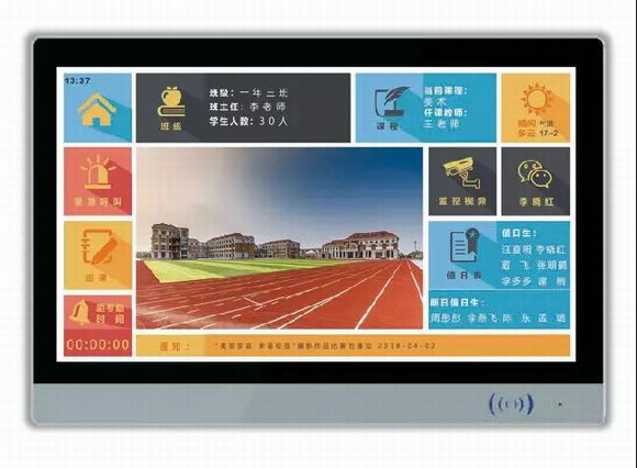 電子班牌是一款智能物聯(lián)網(wǎng)信息終端,通過(guò)校園智慧化平臺(tái)的數(shù)據(jù)呈現(xiàn),一方面呈現(xiàn)了校園特色和班級(jí)文化的豐富多彩,另一方面成為了學(xué)校與班級(jí)、教室與學(xué)生、以及家長(zhǎng)與學(xué)生之間的互動(dòng)媒介之一。電子班牌為學(xué)校提供今日課表區(qū)、班級(jí)基本信息區(qū)、文化展示區(qū)、滾動(dòng)通知區(qū)、功能按鍵區(qū)、今日值日區(qū)等六大功能模塊,助力學(xué)校真正發(fā)揮智慧校園優(yōu)勢(shì),豐富和創(chuàng)新教學(xué)生活