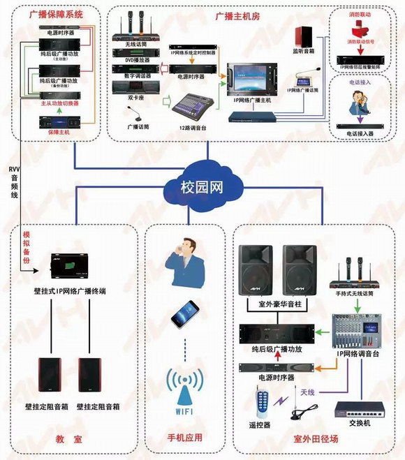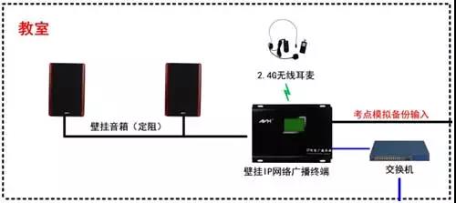 教室IP網(wǎng)絡(luò)廣播終端內(nèi)置模擬備份模塊和2.4G無線耳麥模塊,當(dāng)教室IP網(wǎng)絡(luò)終端遇到斷網(wǎng)、斷電或者在整個(gè)服務(wù)器癱瘓、網(wǎng)絡(luò)延時(shí)等情況下,都可以通過機(jī)房的IP廣播保障主機(jī)自動(dòng)切換到模擬備份模塊。而老師則可以通過2.4G無線耳麥對(duì)教室進(jìn)行無線擴(kuò)聲,本地教學(xué)等。
